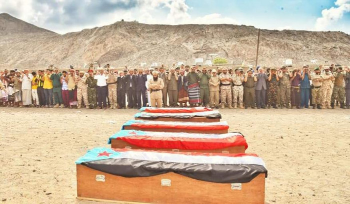 أدى محافظ العاصمة عدن أحمد حامد لملس، صباح اليوم الأحد، وقيادات المجلس الانتقالي الجنوبي في عدن، صلاة الجنازة على جثامين شهداء الجنوب.