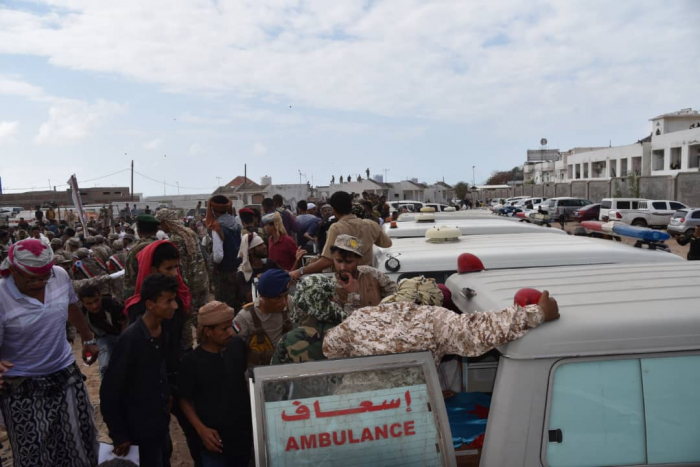 وشيعت حشود المواطنين جثامين الشهداء عوض السعدي قائد عمليات الدعم والإسناد، والقائد عبدالمجيد بن شجاع قائد كتيبة الحماية في اللواء الأول دعم وإسناد، وسالم قاسم سعيد، وعدنان محمد صالح أحمد من اللواء الأول دعم وإسناد.