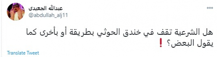 وقال في تغريدة عبر "تويتر" رصدها "المشهد العربي": "هل الشرعية تقف في خندق الحوثي بطريقة أو بأخرى كما يقول البعض؟".