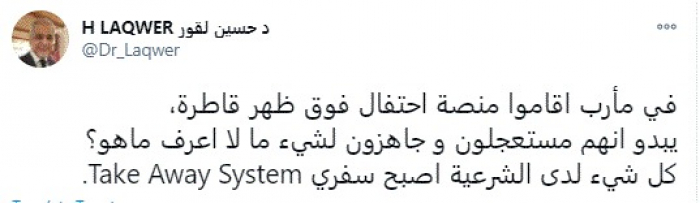 وأضاف: "كل شيء لدى الشرعية أصبح سفري Take Away System".