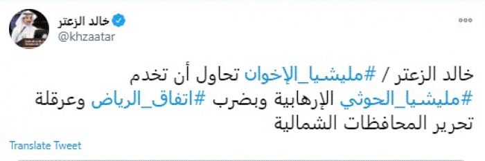 الزعتر: إخوان اليمن يُحاولون خدمة الحوثي بضرب اتفاق الرياض