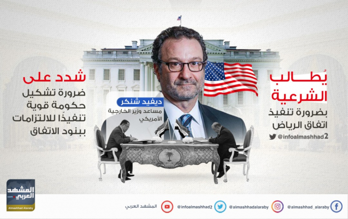 طالب مساعد وزير الخارجية الأمريكي ديفيد شنكر، اليوم الاثنين، الشرعية بالتنفيذ الكامل لاتفاق الرياض.