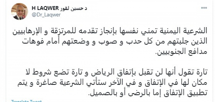 لقور: اتفاق الرياض سُينفذ.. والشرعية ستظل صاغرة