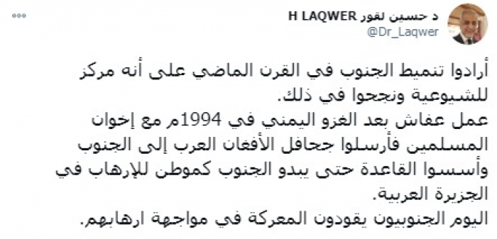 لقور: الجنوب يقود معركته بمواجهة إرهاب الشرعية وتنظيماتها المتطرفة