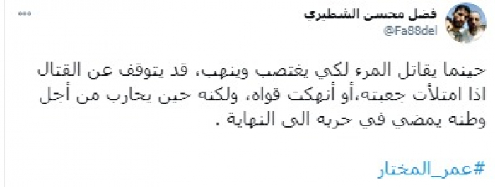اقتبس فضل الشطيري رئيس دائرة الشباب والطلاب بالمجلس الانتقالي الجنوبي في يافع، عبارة للمجاهد الليبي عمر المختار، للتعبير عن الوضع الميداني في الجنوب.