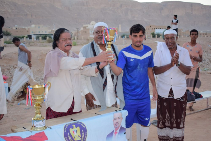وسلم أحمد الحامد نائب رئيس القيادة المحلية للمجلس في مديرية سيئون الجوائز العينية للفريقين.