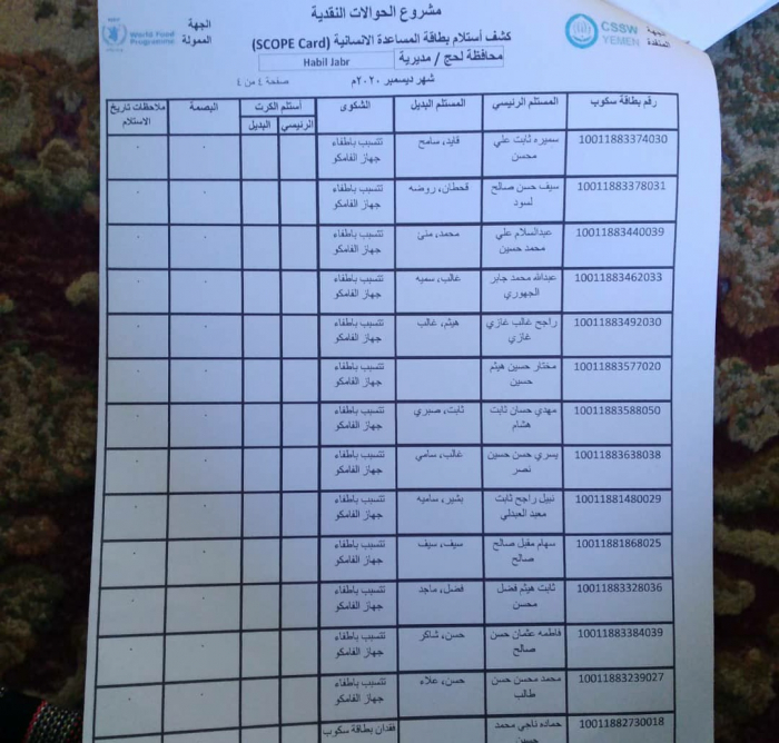 في استجابة لـ " المشهد العربي"، بدأت منظمة الغذاء العالمي، تصحيح بيانات 60 مستفيدًا من مساعدات المنظمة النقدية، اليوم الخميس، في مديرية حبيل جبر بمحافظة لحج.