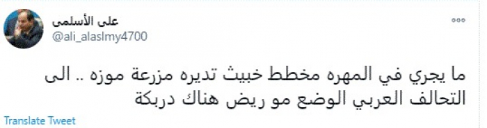 وقال في تغريدة عبر "تويتر" رصدها "المشهد العربي": "ما يجري في المهرة مخطط خبيث تديره مزرعة موزة".