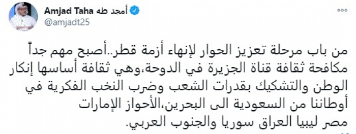 أمجد طه يدعو لمكافحة ثقافة قناة الجزيرة في المنطقة