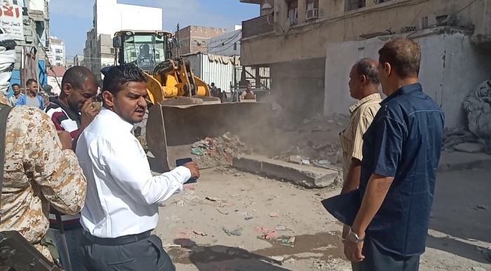 تفقد مأمور مديرية الشيخ عثمان في العاصمة عدن، الدكتور وسام معاوية، اليوم الثلاثاء، سير حملة إزالة العشوائيات ومخالفات البناء والمظاهر المشوهة.