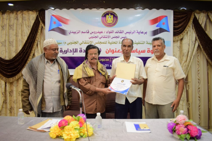 شهدت مدينة سيئون اليوم الخميس، ورشة عمل للهيئة التنفيذية للمجلس الانتقالي الجنوبي، عن "القيادة الإدارية"، لمسؤولي الشؤون الاجتماعية في المراكز المحلية.