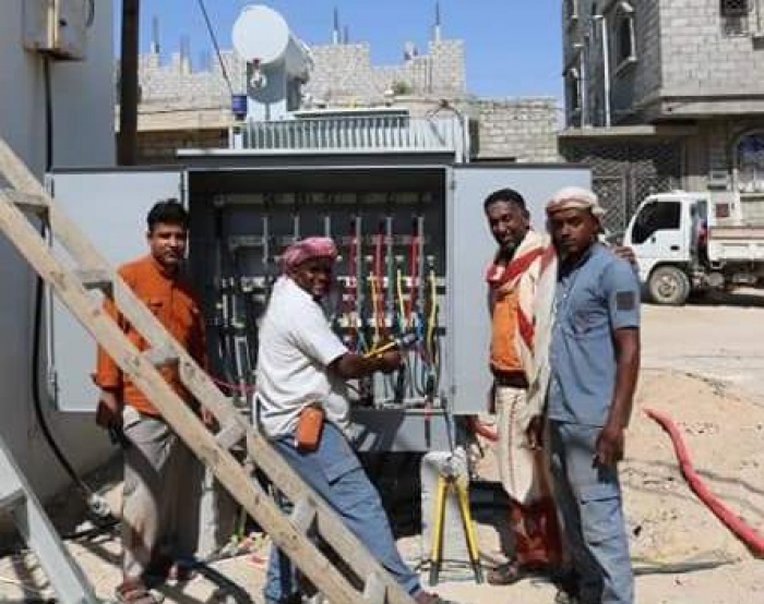 واصل عمال مؤسسة الكهرباء في ساحل حضرموت، تحسين شبكة توزيع التيار الكهربائي، في منطقة فوة ابن سيناء.
