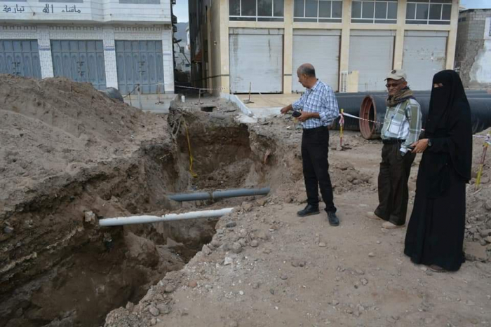 وتفقد أعمال تغيير الأنابيب القديمة بأنابيب جديدة، يبلغ قطرها مترًا، وسط تواصل بناء غرف استقبال كبيرة (مناهل) لتسهيل تصريف مياه الأمطار إلى بحر صيرة.