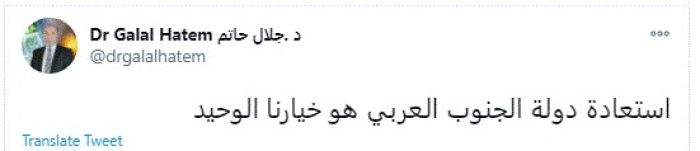 وكتب في تغريدة عبر "تويتر" رصدها "المشهد العربي": "استعادة دولة الجنوب العربي هو خيارنا الوحيد".