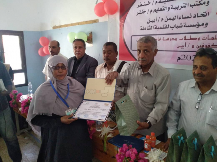 احتضنت قاعة ثانوية الفاروق، بمدينة جعار في أبين، اليوم الأحد، حفلًا لتكريم معلمات وطلاب وطالبات مدرسة فاطمة العاقل للمكفوفين في المحافظة.