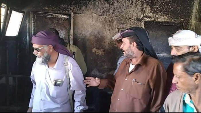وفد انتقالي المحفد يطلع على خسائر حريق مستشفى المديرية