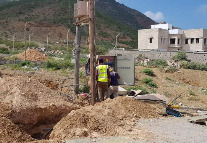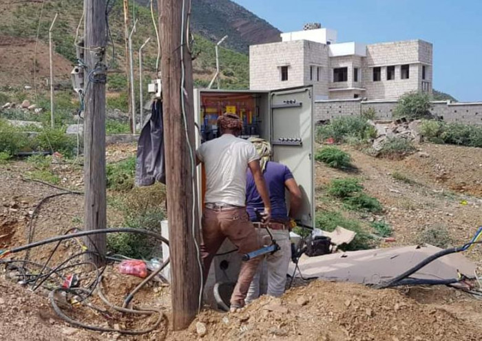 استبدال لوحة تحكم بخط كهرباء مكتب المياه في سقطرى
