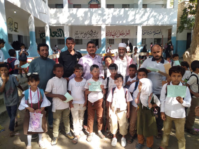 ووزعت إدارة المدرسة - وسط أجواء من البهجة - الشهادات الدراسية وجوائز عينية على الطلاب المتميزين من الصف الأول إلى الصف الرابع الابتدائي.