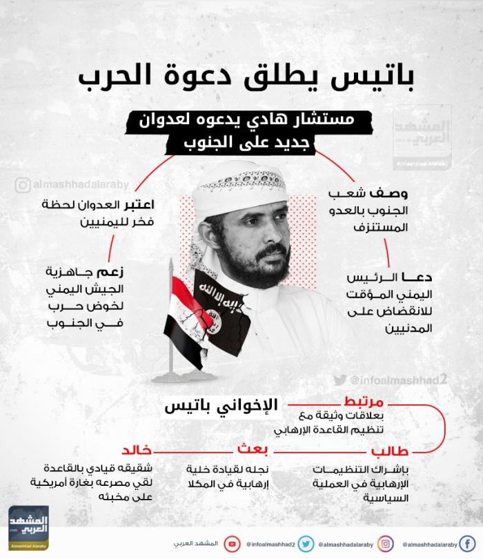 أطلق القيادي في تنظيم الإخوان الإرهابي المدعو صلاح باتيس، دعوة للرئيس اليمني عبدربه منصور هادي للعدوان على الجنوب.