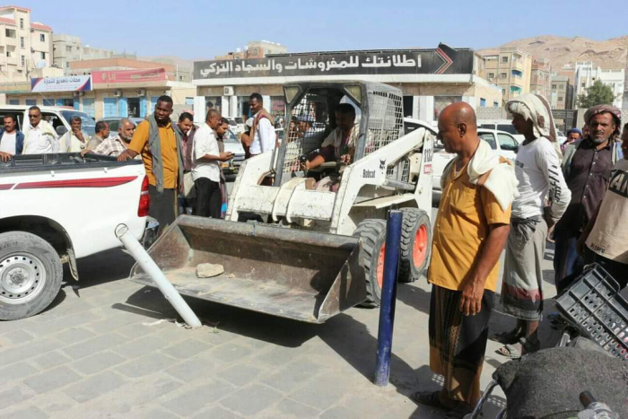 واصل مكتب الأشغال في مدينة المكلا، بساحل حضرموت، اليوم الاثنين، حملة إزالات بمنطقة ديس المكلا.