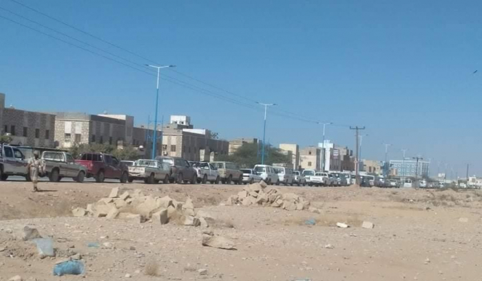 تكدست السيارات المتوقفة في شوارع مديرية عتق بمحافظة شبوة، وسط غياب المحروقات بعد توقف وصول القاطرات منذ 20 يومًا.