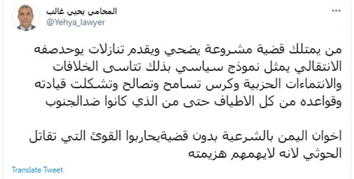 غالب: الشرعية الإخوانية بدون قضية.. والانتقالي نموذج سياسي كبير