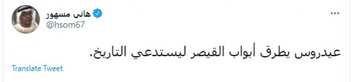 وقال في تغريدة عبر "تويتر" رصدها "المشهد العربي": "عيدروس يطرق أبواب القيصر ليستدعي التاريخ".