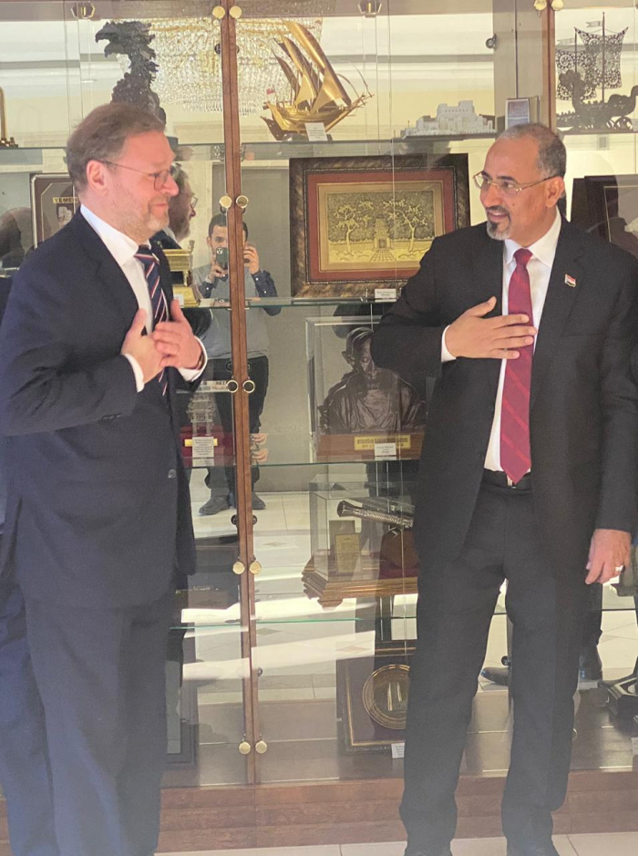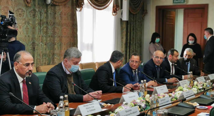 بحث الرئيس عيدروس الزُبيدي رئيس المجلس الانتقالي الجنوبي، والوفد المرافق له؛ مع رئيس لجنة شؤون الدولية بمجلس الاتحاد الروسي قسطنطين كوساتشيف؛ ونائبه ومسؤولين في مجلس الاتحاد، تكثيف علاقات التعاون.