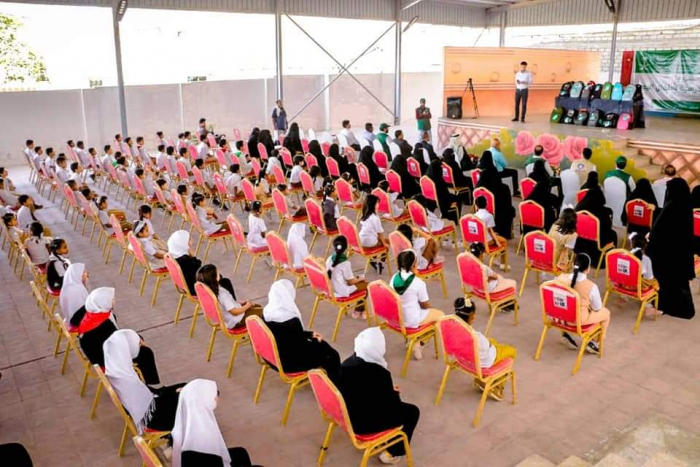 سلمان للإغاثة يوزع الحقيبة المدرسية على طلاب حضرموت