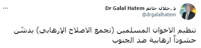 جلال حاتم يحذر من تحشيد الإخوان نحو الجنوب