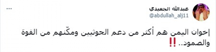 وشدد في تغريدة على حسابه بموقع التدوين المصغر تويتر، اليوم على أن: "إخوان اليمن هم أكثر من دعم الحوثيين ومكّنهم من القوة والصمود".