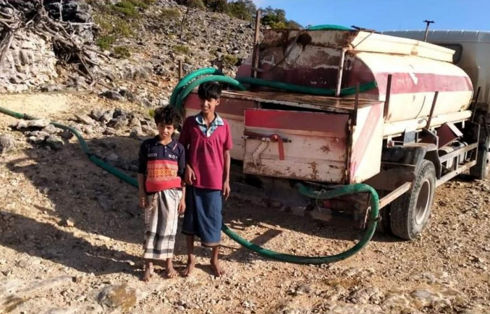بالصور.. خليفة الإنسانية تروي عطش أهالي ديكسم بسقطرى