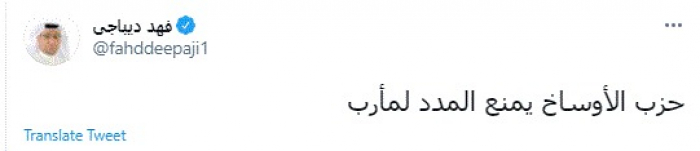 وقال في تغريدة عبر "تويتر" رصدها "المشهد العربي": "حزب .... يمنع المدد لمأرب".