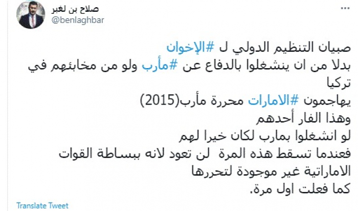 شن الإعلامي صلاح بن لغبر، اليوم، هجومًا حادًا على صبيان التنظيم الدولي للإخوان في تركيا جراء انشغالهم بالهجوم على الإمارات رغم التطورات في مأرب.