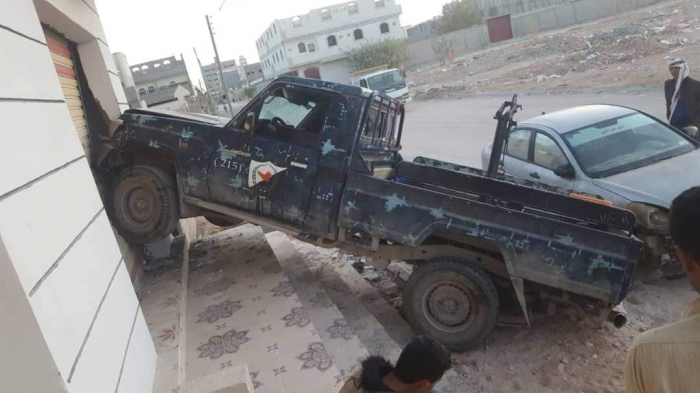 في واقعة غريبة، اصطدم طقم عسكري تابع لسلطات الإخوان الإرهابية في محافظة شبوة بجدار أحد مكاتب العقارات بمدينة عتق.