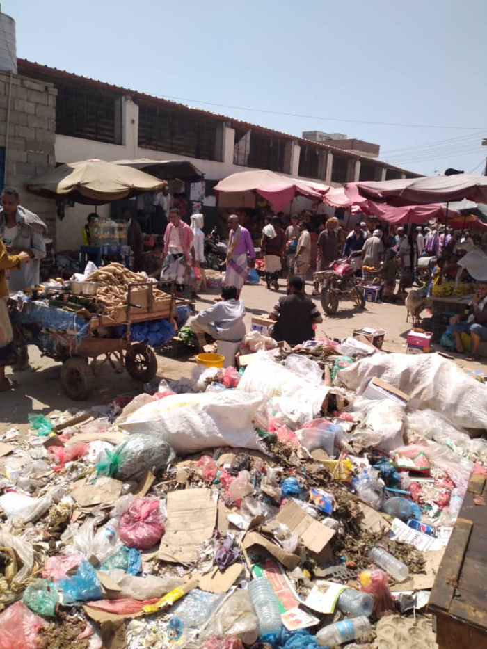 طالب أهالي مدينة زنجبار بمحافظة أبين، الجهات المعنية بتحمل مسؤولياتها عبر رفع القمامة المُتكدسة في مدخل سوق الأسماك والخضروات.