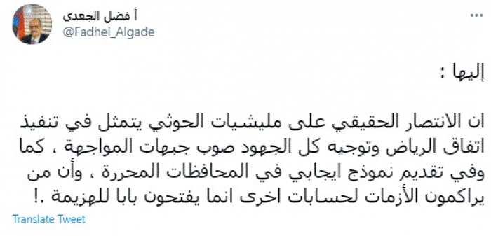 الجعدي: الانتصار الحقيقي على الحوثي يتمثل في تنفيذ اتفاق الرياض
