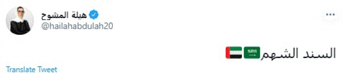 وقالت في تغريدة عبر "تويتر" رصدها "المشهد العربي": "السند الشهم".