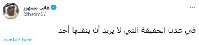 وقال في تغريدة عبر "تويتر" رصدها "المشهد العربي": "في عدن الحقيقة التي لا يريد أن ينقلها أحد".