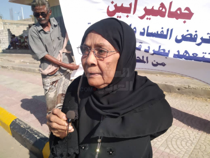 وتشير إلى أن الحشود خرجت لتقول بصوت واحد، لا للفساد في محافظة أبين، مضيفة أن المواطنين لن يسمحوا بالفساد ووجوده في المحافظة.
