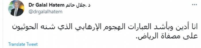 جلال حاتم يُدين استهداف الحوثي لمصفاة البترول بالرياض