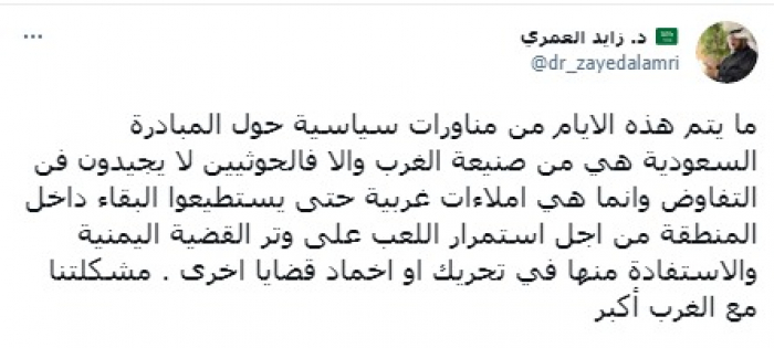 العمري: المناورات الحوثية حول المبادرة السعودية صنيعة غربية