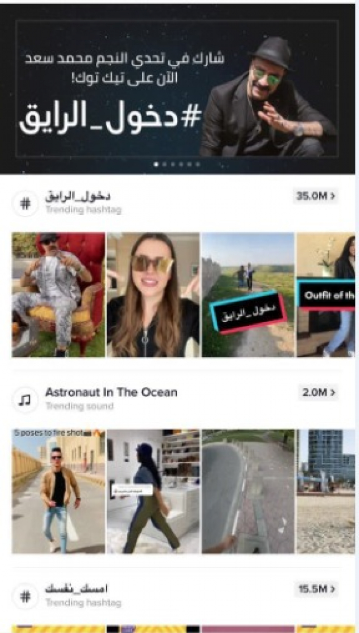 وطلب من جمهوره أداء فيديو قصير على "تيك توك"، مصحوبا بهاشتاج: "دخول الرايق"، وقال سعد في فيديو "النهاردة التحدي بتاعي هيبتدي على التيك توك هشوف حركاتكم وابداعاتكم على أغنيتي الجديدة.. هاشتاج دخول الرايق".