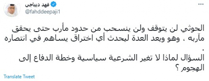ديباجي يتساءل: لماذا لا تغير الشرعية سياستها ضد الحوثي في مأرب؟