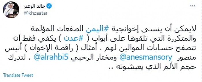 الزعتر: إخوان اليمن لن ينسوا الصفعات المؤلمة التي تلقوها على أبواب العاصمة عدن