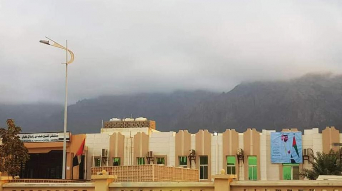 تزيين واجهة مستشفى خليفة في سقطرى بصورة بن زايد