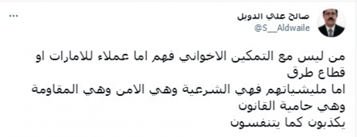 الدويل يستنكر اتهامات أبواق الإخوان لمعارضي مشروع تمكينهم