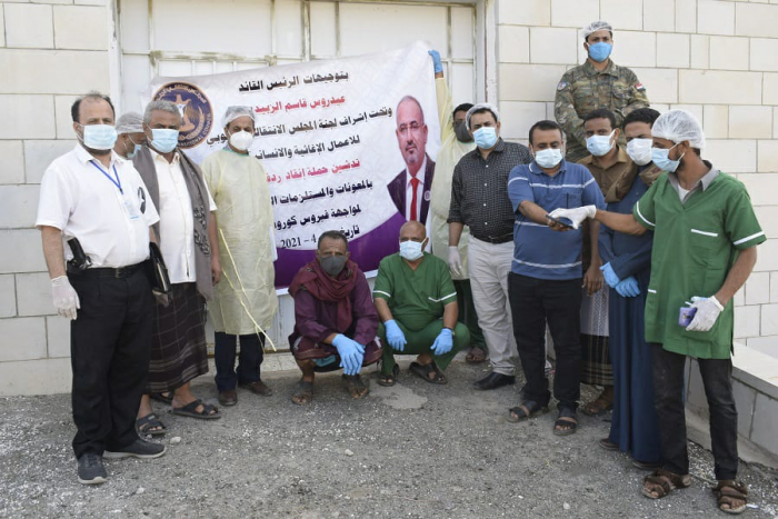 وسلمت الحملة مستلزمات طبية إلى مركز العزل في مستشفى ردفان العام، شملت 20 إسطوانة أكسجين، وملابس واقية وكمامات.