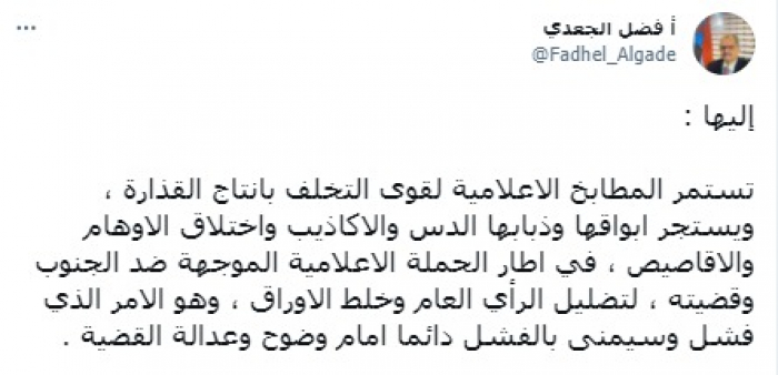 الجعدي: عدالة قضية الجنوب تحبط حملات تضليل الرأي العام