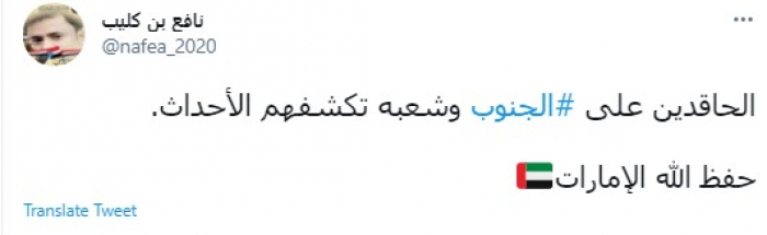 وكتب في تغريدة عبر "تويتر" رصدها "المشهد العربي": "الحاقدين على الجنوب وشعبه تكشفهم الأحداث".